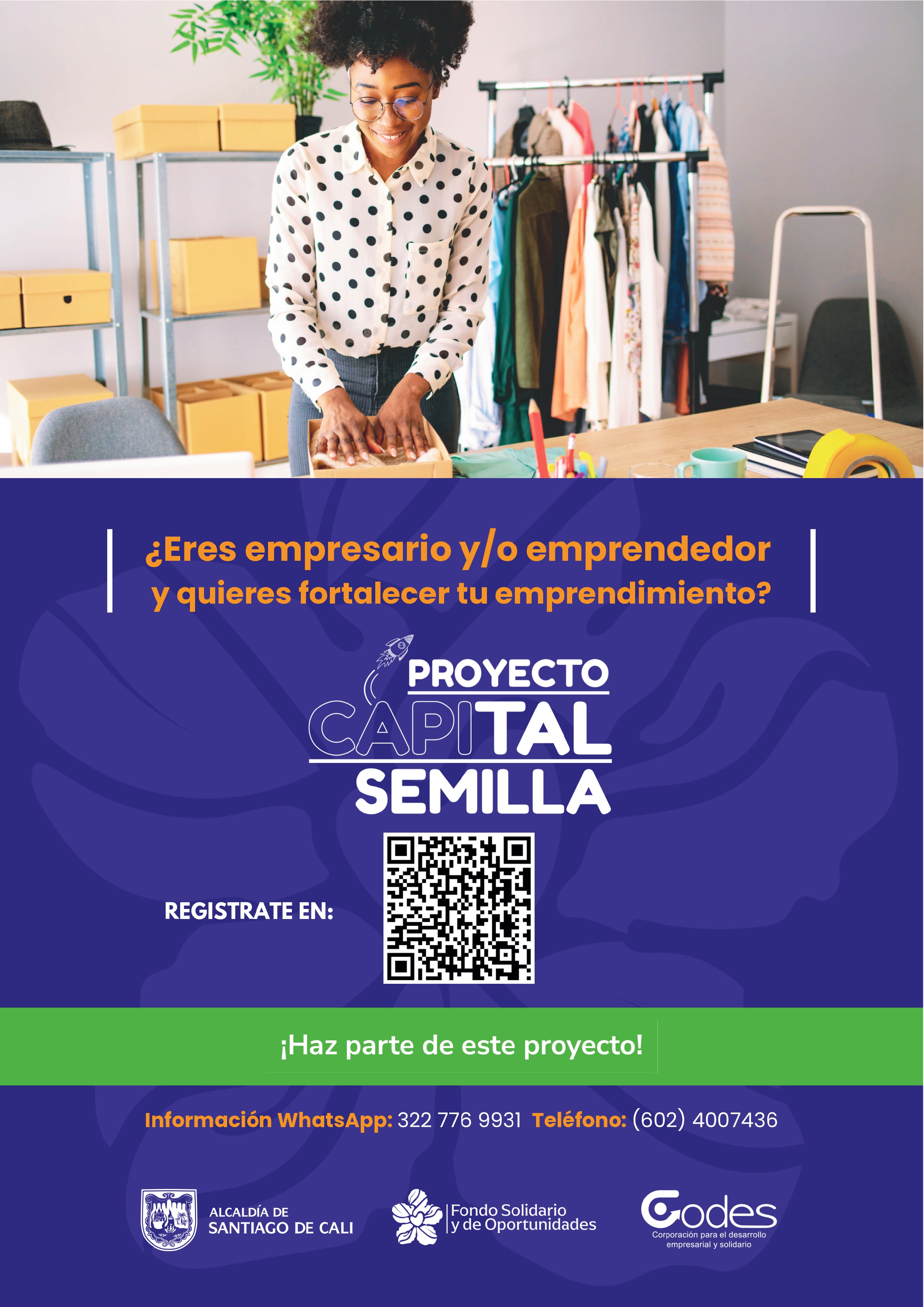 En el marco del Programa Fondo Solidario y de Oportunidades, la Alcaldía de Cali Distrito, a través de la Secretaría de Desarrollo Económico, se complace anunciar la apertura de la línea capital semilla 2024 en el marco del programa Fondo Solidario y de Oportunidades, que tiene como objetivo fortalecer técnica y financieramente emprendedores, trabajadores informales y MiPymes, los cuales deben pasar por un proceso de inscripción, evaluación, formación y generación de plan de negocio para ser beneficiarios de este importante proyecto pensado para la población emprendedora de la ciudad.