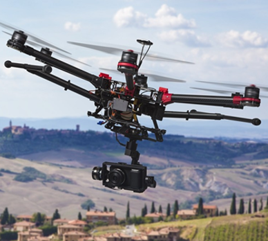 La primera es una aeronave tipo multi -rotor de seis (6) hélices (hexacóptero) en estructura de fibra de carbono. Tiene una autonomía de vuelo de 16 minutos con una carga hasta de 6 kg, o de hasta 35 min con una carga mucho más liviana. Cuenta con dos (2) Sistemas Globales de Navegación por Satélite (GPS + Glonass) incorporados y un tren de aterrizaje retráctil.