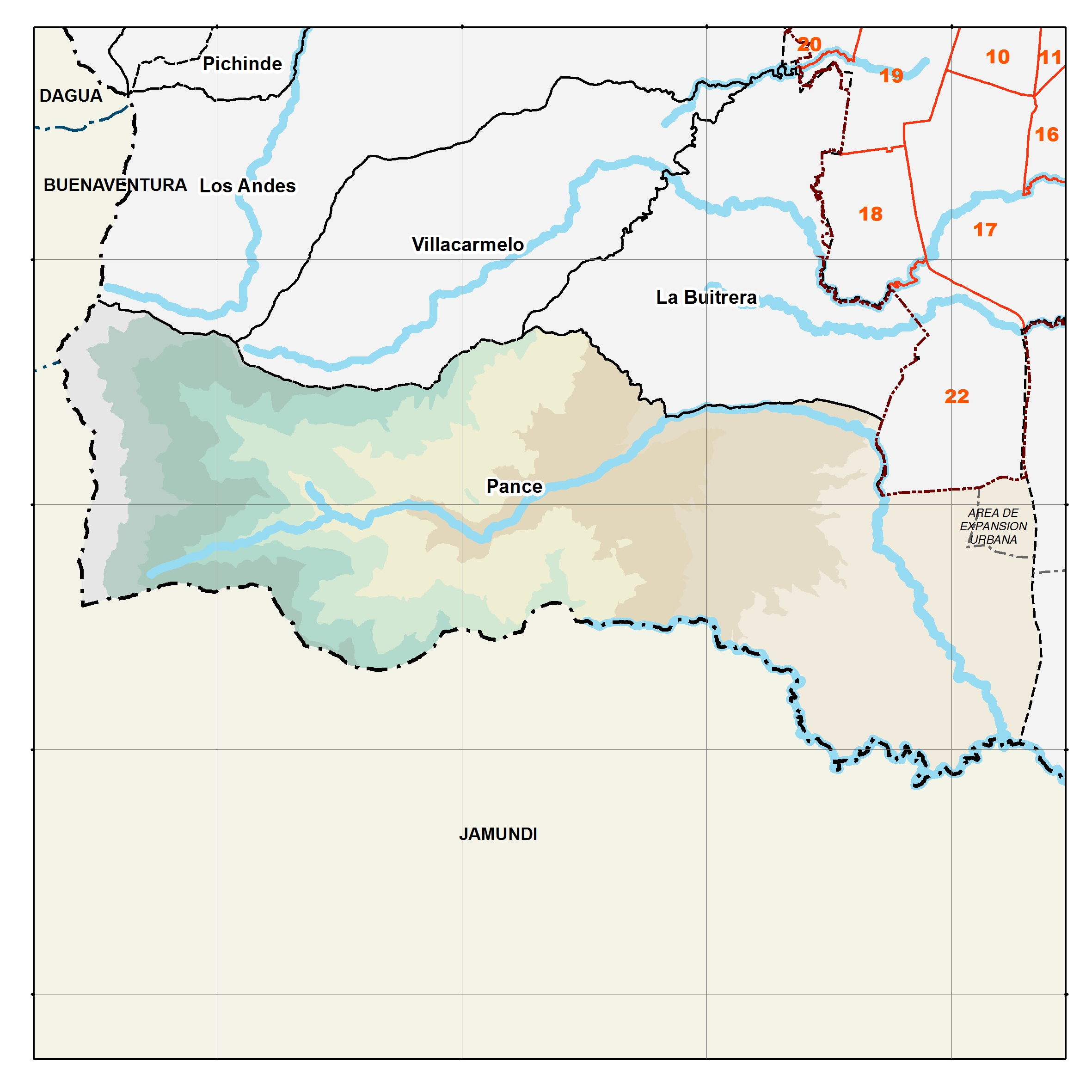 Los mapas cuentan con información básica, tales como: límites administrativos, centros poblados, vías, caminos, ríos, quebradas, equipamientos, sitios de interés, entre otros. También cuentan con información estadística tomada de los documentos Cali en Cifras 2022 y SISBÉN IV 2024, con el fin de ofrecer datos relevantes de los corregimientos.